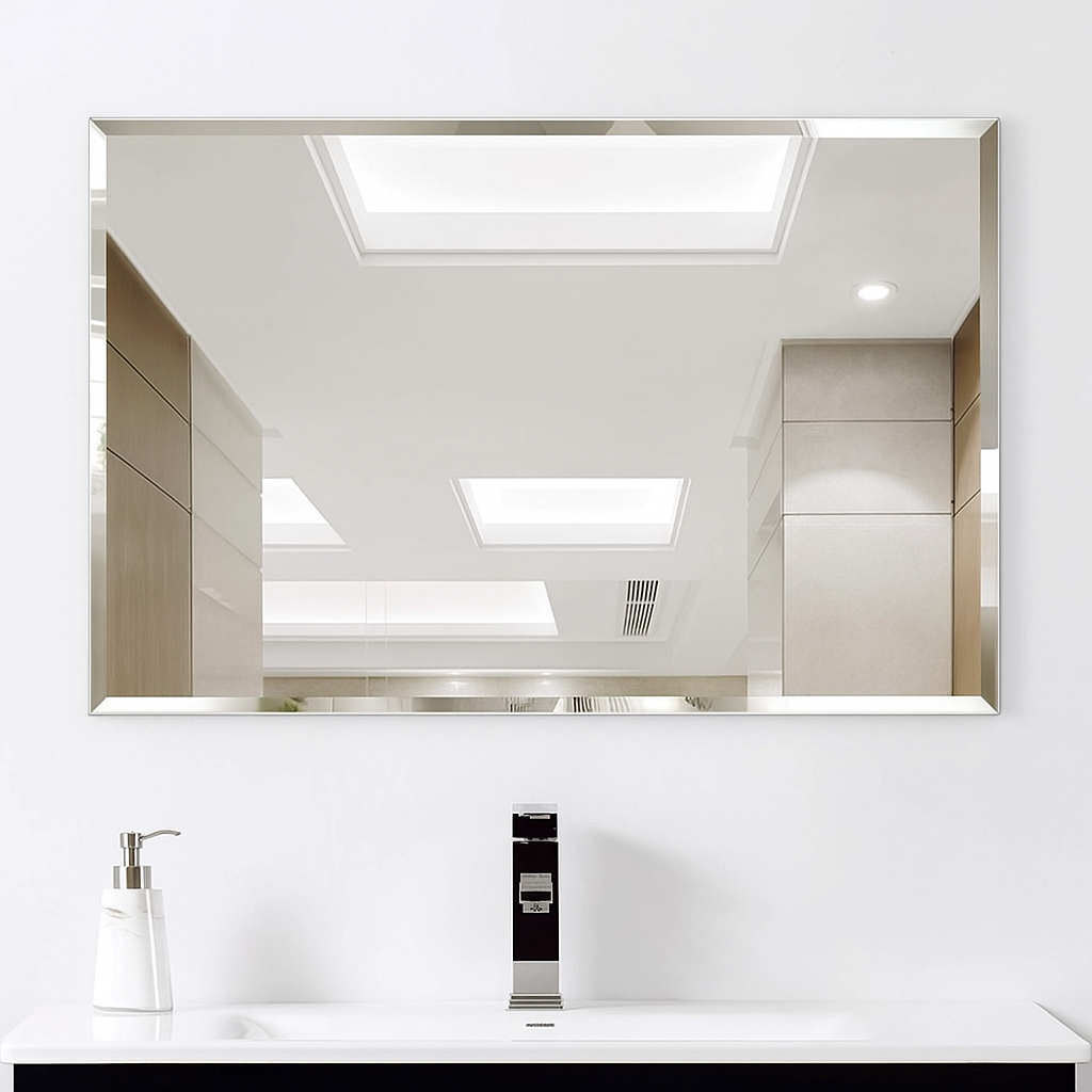 Bathroom Mirrors Frameless For Wall, Wall Mounted Bevelled Frameless Wall Mirror
