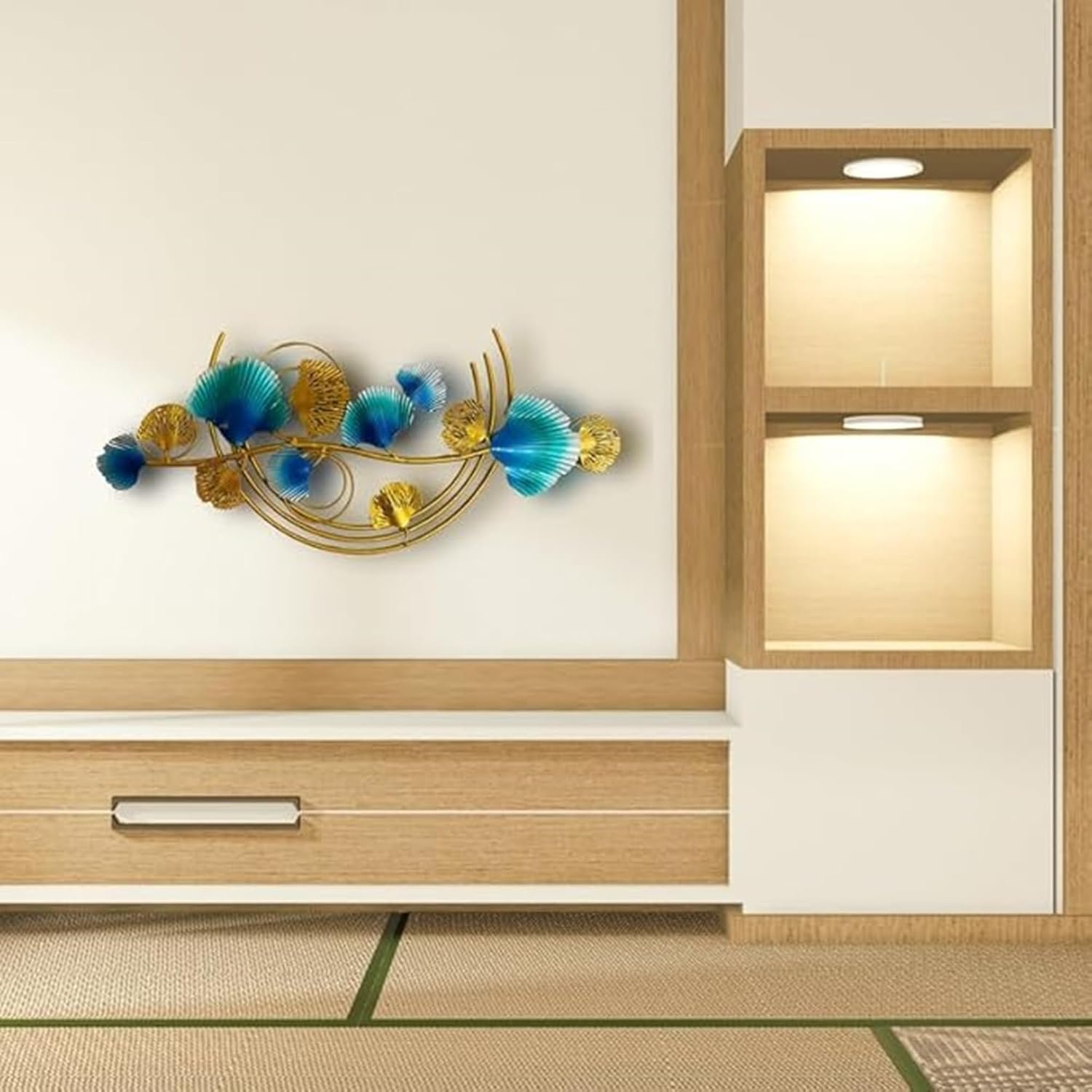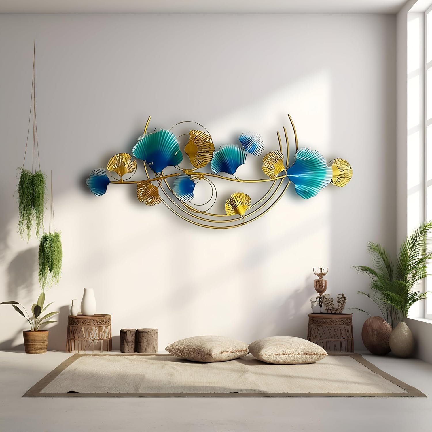 • The Gingo Hanging Iron Metal Abstract Wall Sculpture is a stunning piece of wall décor designed to enhance any interior. Made from high-quality iron, this wall art features a multicolor abstract floral-inspired design that blends traditional craftsmanship with modern aesthetics. Perfect for home decoration, living rooms, bedrooms, offices, or cafes, it serves as both an artistic statement and a stylish accent. Its 34×1.5×15 inch size makes it an ideal choice for accent walls, giving your space a sophisticated yet vibrant look.